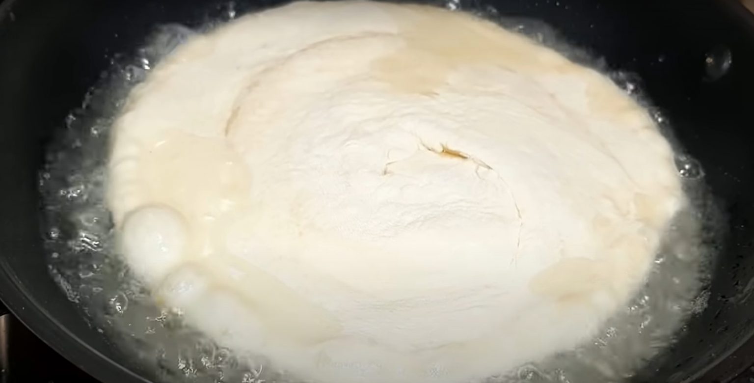 Розкочуємо равлик у невеликий коржик за розміром вашої сковороди і обсмажуємо його до рум’яності з двох боків.