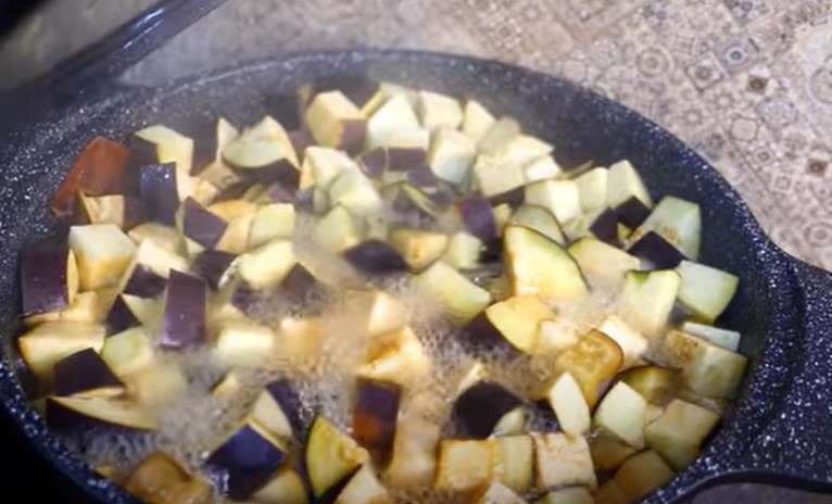 Баклажани також обсмажуємо порційно до рум’яності.