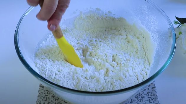 КРОК 4: Просіюємо борошно і обережно вимішуємо тісто лопаткою.