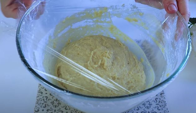 КРОК 5: Накриваємо тісто плівкою і ставимо в тепле місце на годину-півтори.