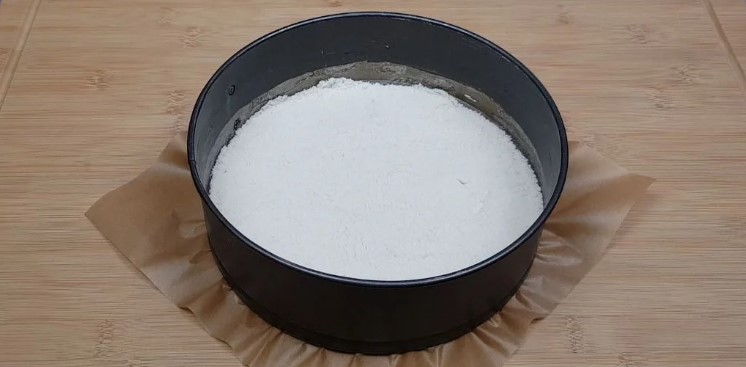 Дно форми закриваємо пергаментним папером, боки форми нічим закривати і змащувати не треба.