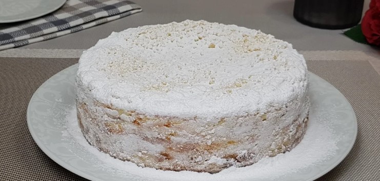 Даємо пирога повністю охолонути у формі. Коли пиріг охолоне, він осяде, так і повинно бути. Остиглий пиріг звільняємо від форми.