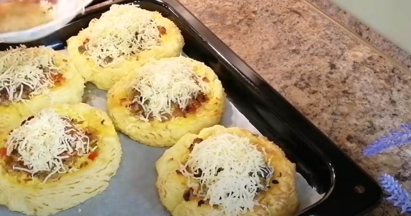 Випікаємо при 180 градусах близько 15 хвилин, але дивіться по своїй духовці, щоб гніздо стало рум’яним, а начинка добре пропеклася і сир розплавився.