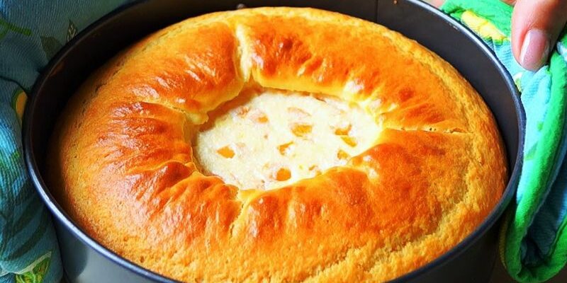 М’який і повітряний пиріг з ніжною сирною начинкою виходить незрівнянно. Це найідеальніший варіант для чаю та гостей. Готується все просто і швидко, можна в сир додають будь-які наповнювачі.