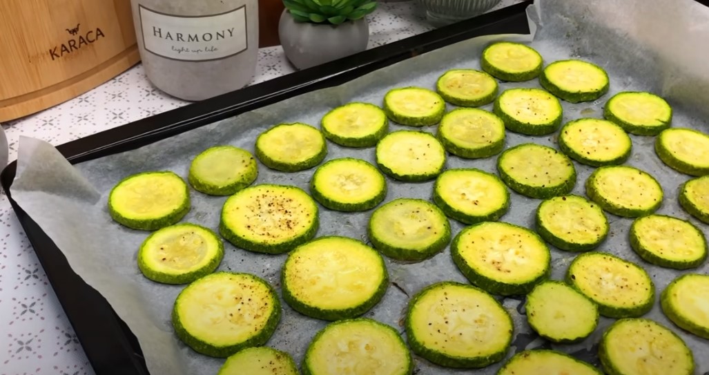 Кабачки ріжемо кружальцями.
