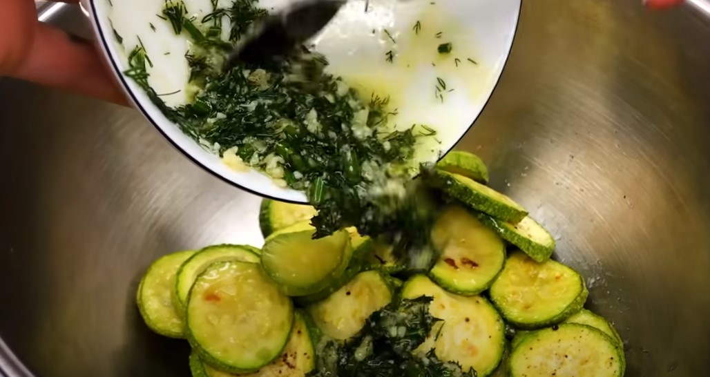 Далі ви можете просто змішати з цією масою кабачки і подавати до столу або додати олію або майонез, а найкраще – сметану і зробити такий свіжий і пікантний соус до кабачків.