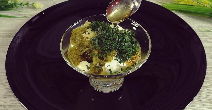 Так само додаємо неповну чайну ложку лимонного соку і кілька гілочок посіченої зелені у мене кріп і перемішуємо.