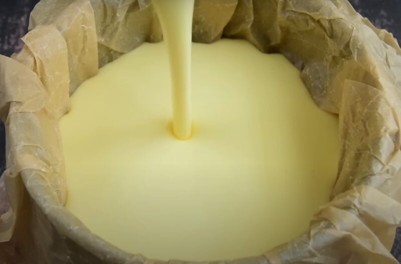 Виливаємо у форму суміш йогурту, яєць та крохмалю.