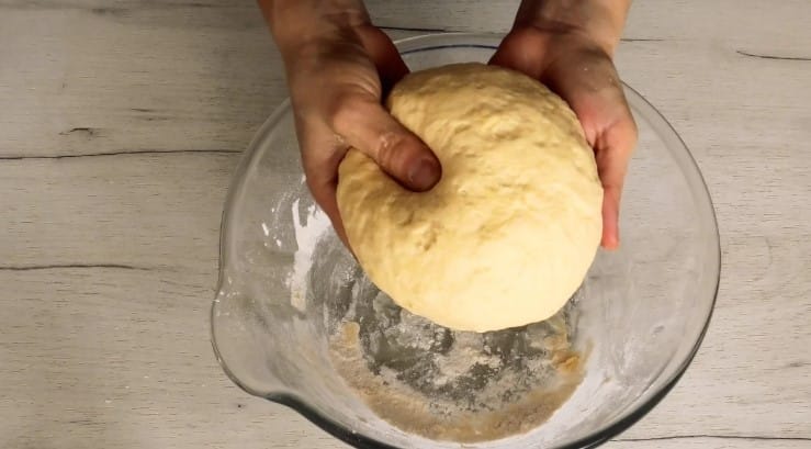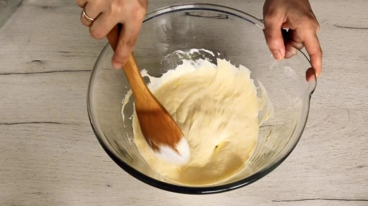 8. Додати розпушувач і борошно, замісити м’яке липким тісто.