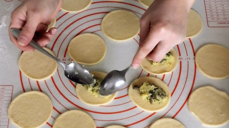 11. На кожне коло викласти по чайній ложці начинки.