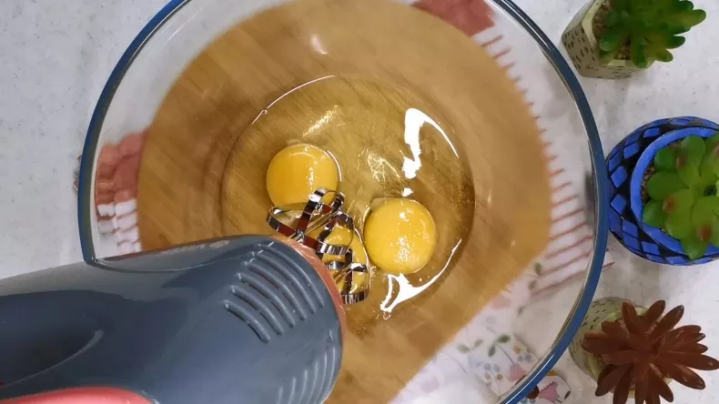 Отже, спочатку збиваємо яйця із дрібкою солі до стану легкої піни. Це близько 1 хвилини.