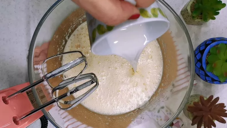 Останнє – розтоплене, але не гаряче вершкове масло. Вливаємо та збиваємо ще разок 30 секунд. Із тістом закінчено!