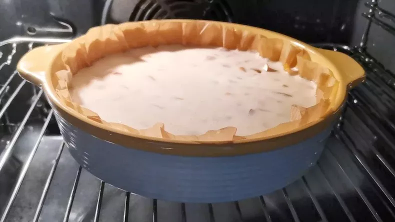 Відправляємо в заздалегідь розігріту духовку і випікаємо 35-40 хвилин при 200 С. Тісто спочатку підніматиметься, потім осяде.