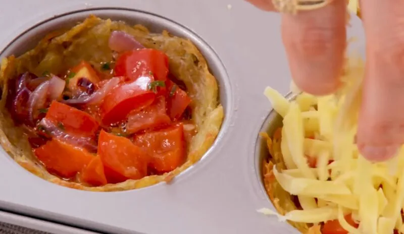 Натираємо на великій тертці сир і викладаємо на верхівку овочевої начинки. Випікаємо мафіни ще 5-10 хвилин.