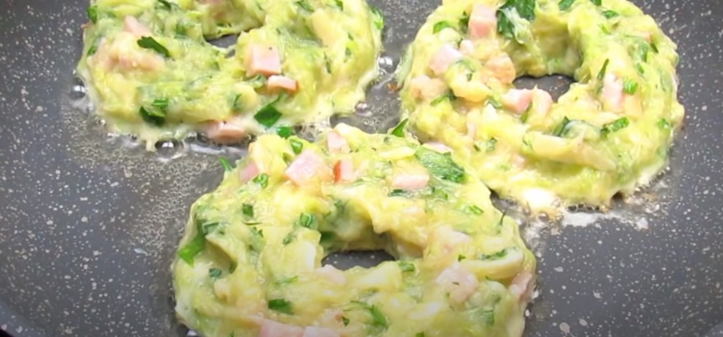 Один з простих і смачних, а головне – швидких рецептів приготування оладок з кабачків. В якості добавки я використовувала шинку, але ви можете взяти і сосиски, варену ковбасу та інші продукти.