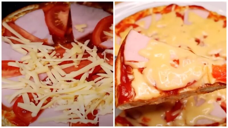 Замість шинки можна використовувати улюблений вид ковбаси, а також додати за смаком болгарський перець, оливки та інші компоненти. На смак ця піца більше схожа на бутерброди, що й слід було очікувати.