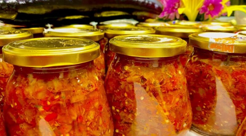 Кип’ятимо під кришкою 5 хв. соус. Викладаємо соус у гарячі стерилізовані банки, щільно закриваємо кришками.