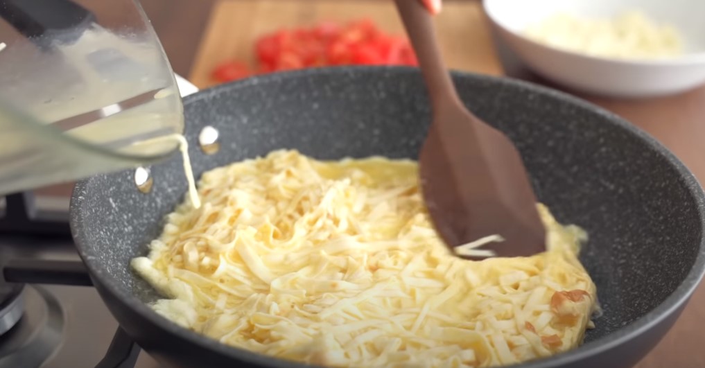 Такий ситний та апетитний омлет із зеленню та сиром, ви можете зробити ще смачнішим, якщо спочатку обсмажите печериці і потім до сковороди додайте лаваш з іншими інгредієнтами. Також можна на лаваш спочатку викласти шинку, порізану соломкою чи ковбасу, а потім уже посипати сиром та зеленню з томатом. Так теж виходить ситний і цікавий, швидкий сніданок.