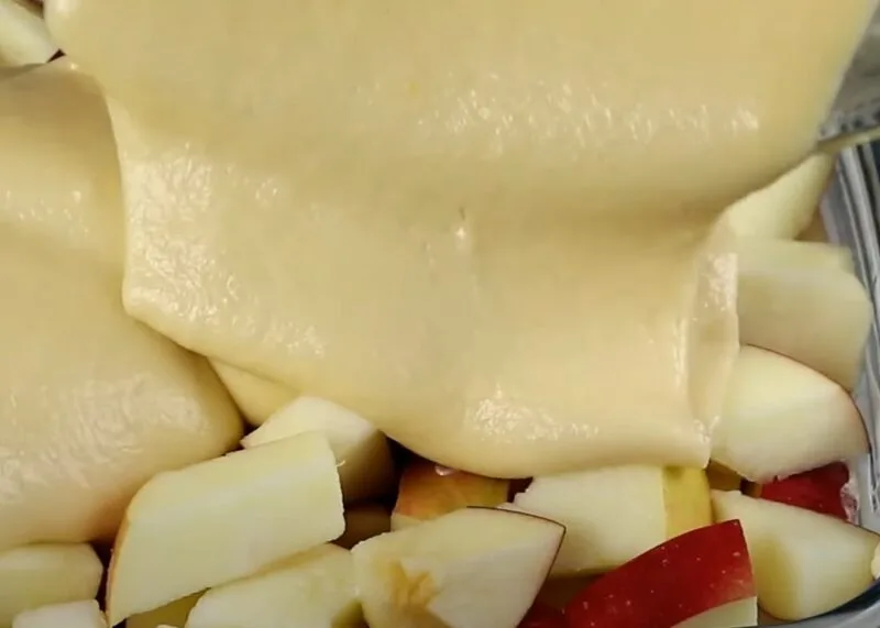 Поливаємо яблучну основу тістом, випікаємо пиріг на 180 градусах 35 хвилин.