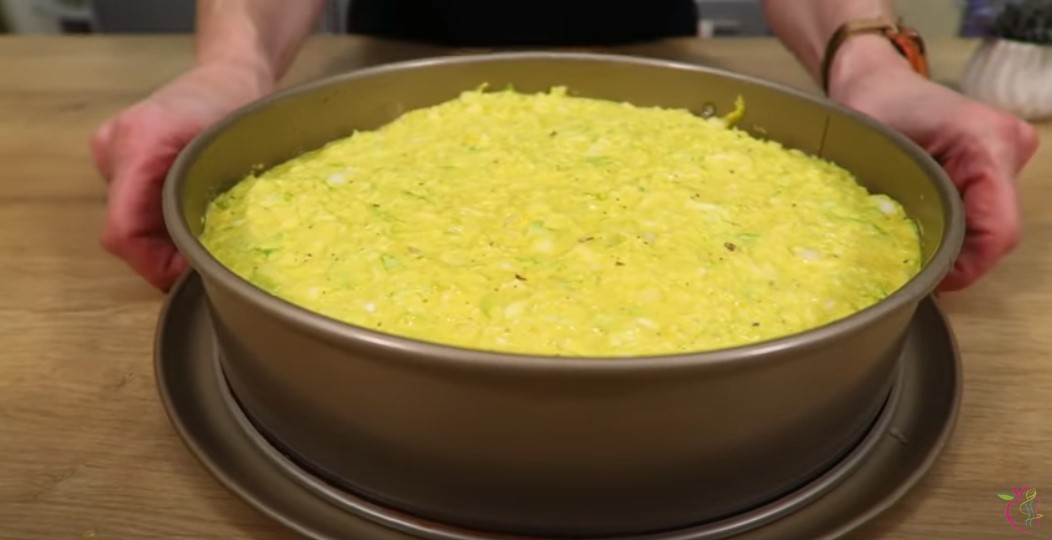 Додаємо соду і збиваємо віночком, куркума та перець додадуть пирогу гарного насиченого кольору, тому кладемо їх у тісто. У цьому рецепті красиво виглядатиме кріп та петрушка.