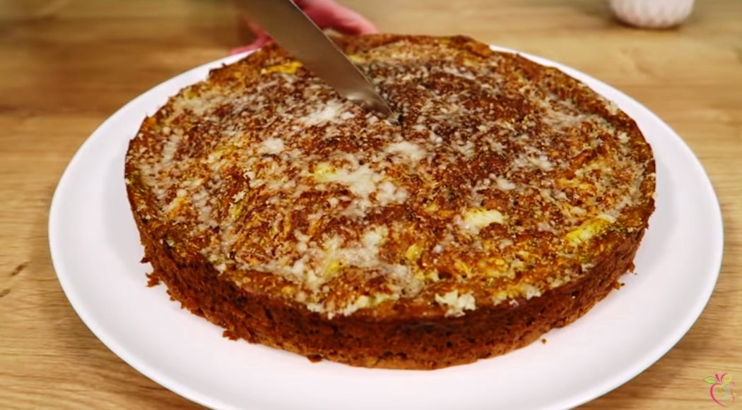 Пиріг готовий. Зверху посипте твердим сиром. Пробуйте та насолоджуйтесь!
