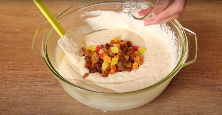 Висипаємо родзинки і цукати.