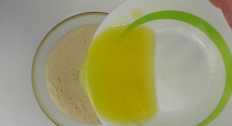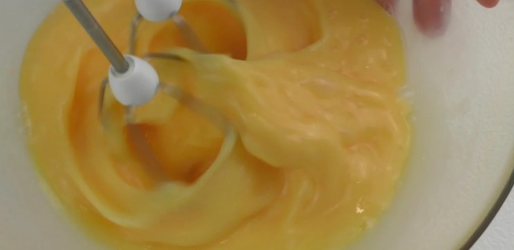 І вливаю його до яєчної суміші. Перемішую віночком і відставляю миску в сторону.