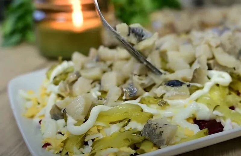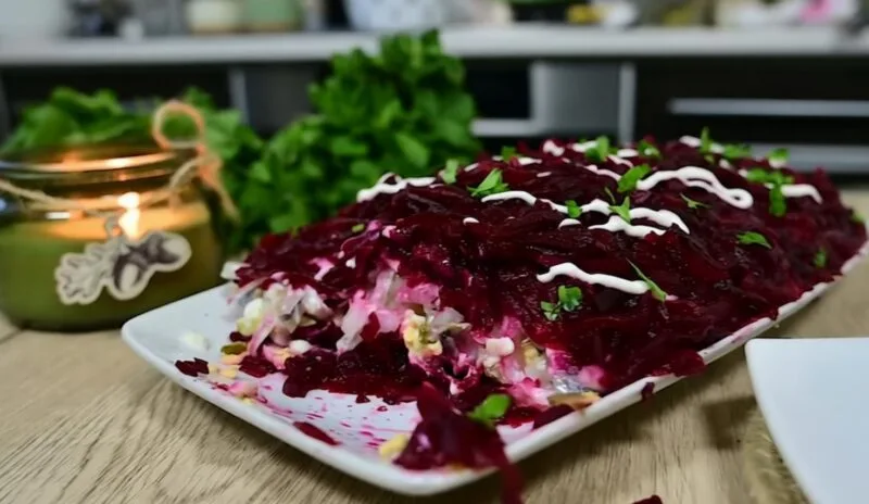 Буряк – джерело вітамінів і мікроелементів. Його солодкуватий смак чудово поєднується з оселедцем, маринованими овочами та ніжним майонезним соусом. Завдяки цьому страва нагадує улюблений «Оселедець під шубою», але має свій оригінальний характер.