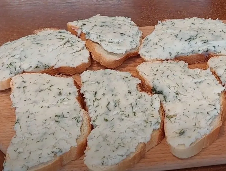 У сковороді розігріваємо олію. Викладаємо на сковороду скибочки хліба начинкою донизу, обсмажуємо 3-4 хвилини.