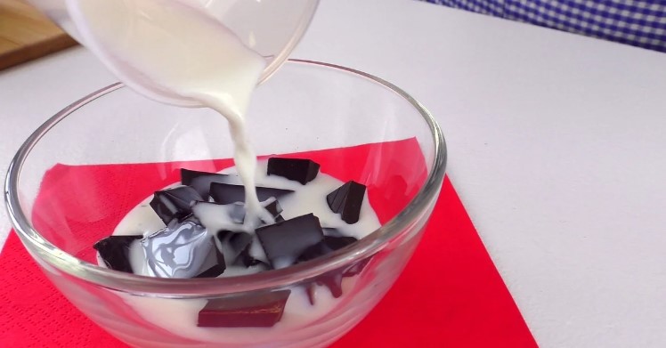 Наламала на дрібні шматочки півплитки шоколаду, з вмістом какао 70%. До нього додала 60 мл. молока і відправила розтоплювати в мікрохвильовку.