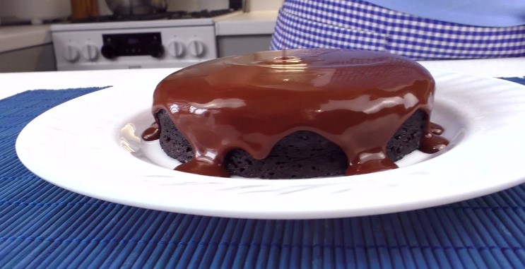 Тепер починається найцікавіше. Форму з шоколадною масою ставимо в мікрохвильовку і готуємо при потужності 800 Вт 5-7 хвилин.