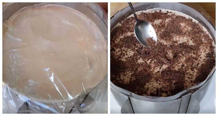 Встановлюємо кільце з ацетатною плівкою на тарілку і сформуємо торт.