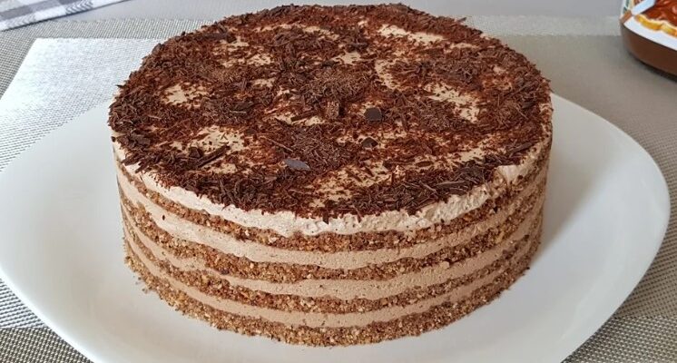 Торт прикрашаємо подрібненим шоколадом або горіхами.