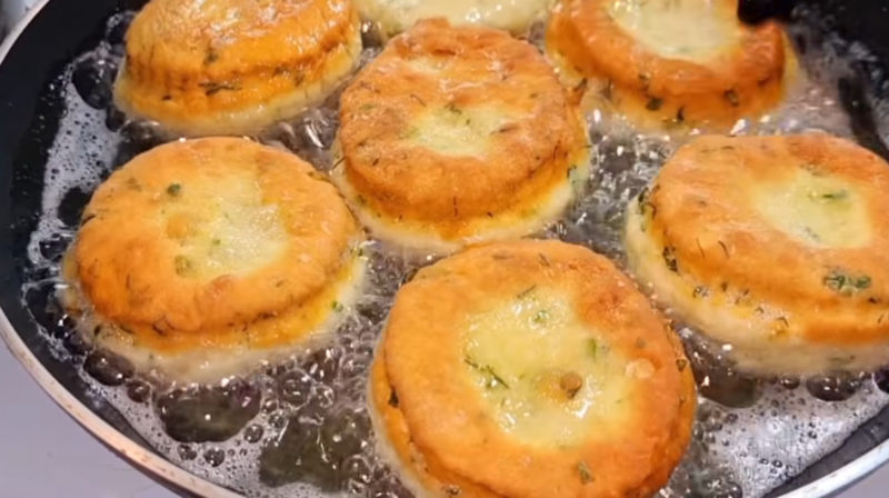 Обсмажте коржики на середньому вогні у великій кількості олії до золотистої скоринки.