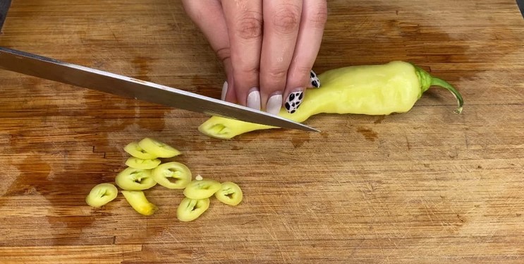 3. Гострий перець нарізаємо кільцями. Кількість гострого перцю беріть на свій смак.