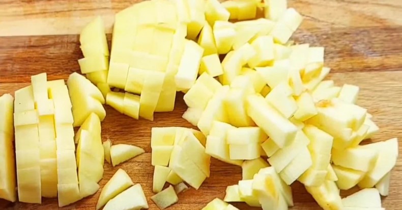З яблук зчищаємо шкірку, видаляємо серцевину та ріжемо на маленькі кубики.