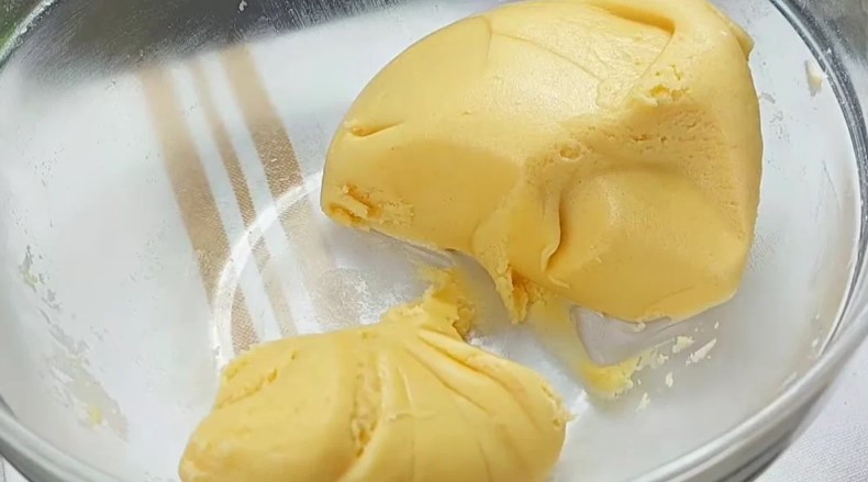 Висипаємо борошно, розпушувач та розмішуємо. 1/3 частину кладемо у морозилку на 10 хвилин.