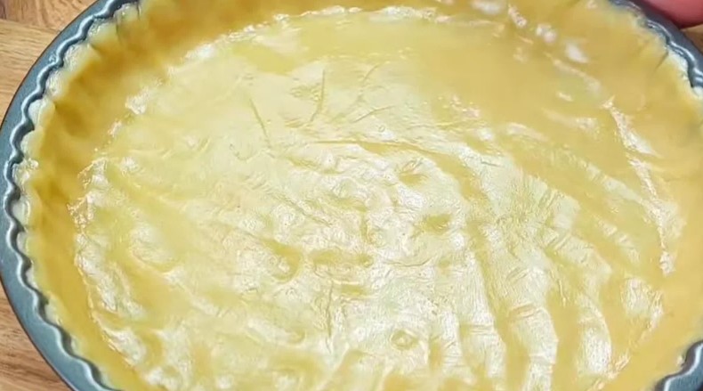 Форму 22 сантиметри змащуємо вершковим маслом і викладаємо більшу частину тіста. Формуємо бортики.