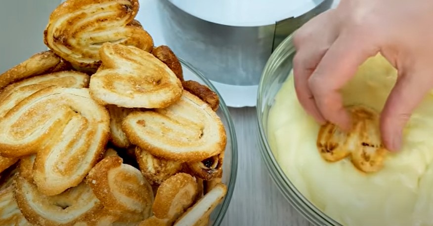 Якщо немає бажання возитися з заварним кремом, для листкового печива підходить крем з збитої сметани з цукровою пудрою. До печива додайте чорнослив і тоді виходить королівський десерт.