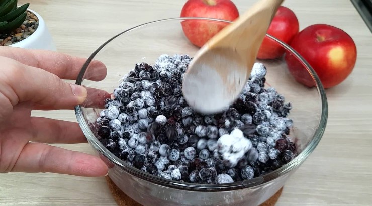 5. У ягоди (у мене заморожена смородина) додати кукурудзяний крохмаль.
