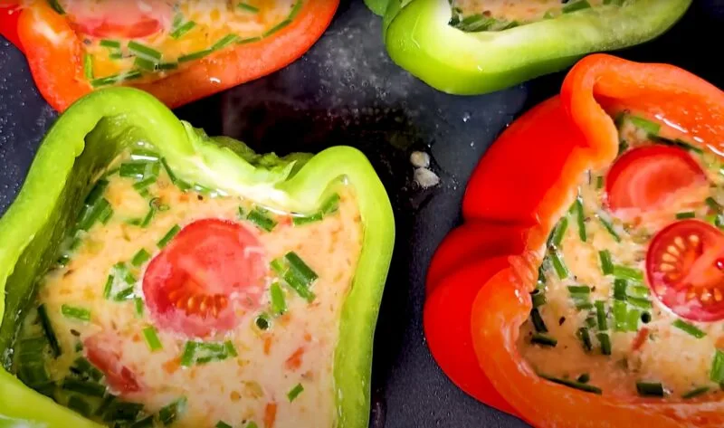 Перці, фаршировані яйцем та сиром – це смачна, ароматна та поживна страва, де соковитий солодкий перець добре поєднується з ніжними яйцями та сиром. Їх можна подати як закуску, на вечерю чи святковий стіл. Готувати такі фаршировані перці просто, а вони виглядають цікаво і гарні як гарячими, так і холодними.