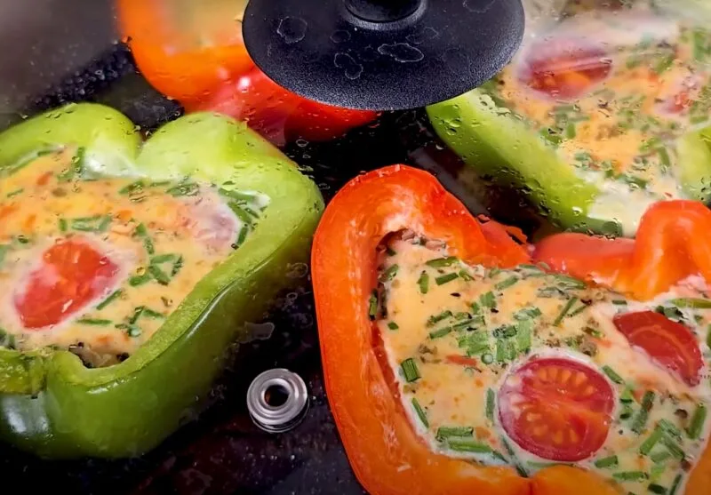 Вливаємо d половинки перцю яєчну суміш.