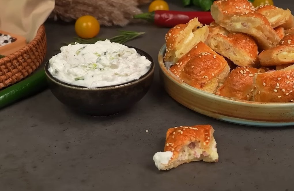 Випікайте у попередньо розігрітій до 200 градусів духовці 20 хвилин. Подавати закуску можна з соусом, приготованим із натертого свіжого огірка, змішаного з сметаною, часником, невеликою кількістю олії та улюбленими спеціями.