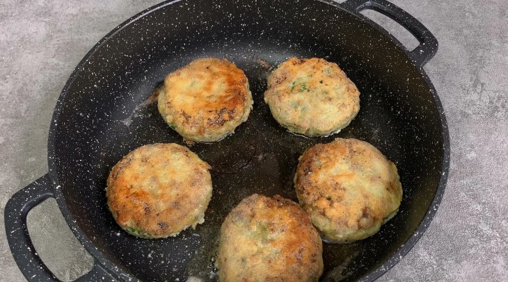 Формуємо котлети, спочатку вмочуємо в яйце, потім в манку і обсмажуємо на олії.