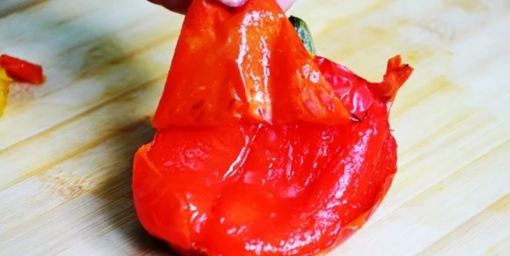 Складаємо перець у каструлю, накриваємо кришкою і залишаємо до повного остигання – після такої «лазні» легко видалити шкірку.