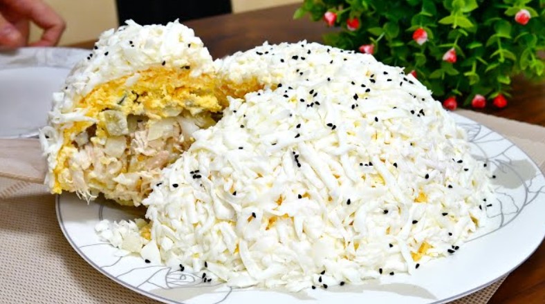 Салат, про який ми хочемо сьогодні розповісти, можна назвати красивим та елегантним, він чудово виглядає на будь-якому святковому столі. Варто спробувати цей рецепт, якщо ви вже зараз думаєте про те, чим пригощати гостей.
