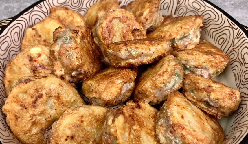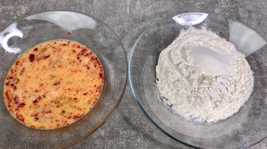 Яйця збиваємо з паприкою та іншими спеціями, борошна всипайте стільки, скільки потрібно для густої маси.